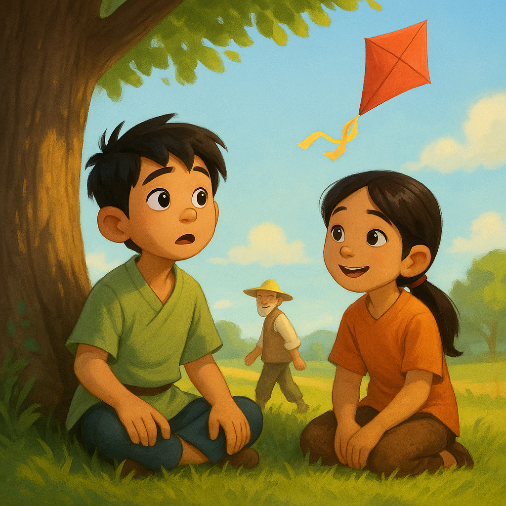 In a small village, a boy named Zeo loved to fix problems. If someone cried, Zeo would run to help. If something broke, he’d try to fix it right away. One day, Zeo saw his friend Nari upset. Her kite was stuck high in a tree. Zeo picked up a stick and jumped. He poked and poked, but the kite stayed. Then a farmer walked by and said, “Zeo, sometimes doing nothing is better.” Zeo frowned. “But I want to help!” The farmer smiled. “Watch the wind,” he said. Zeo sat down with Nari. They waited. The wind blew harder. Soon, the kite flew down by itself. Nari laughed and hugged Zeo. “You helped by not doing anything!” Zeo blinked. “Really?” The farmer nodded. “Bamboo bends but does not fight the wind. It knows when to wait.” Zeo smiled. He learned: sometimes, stillness is the answer. |