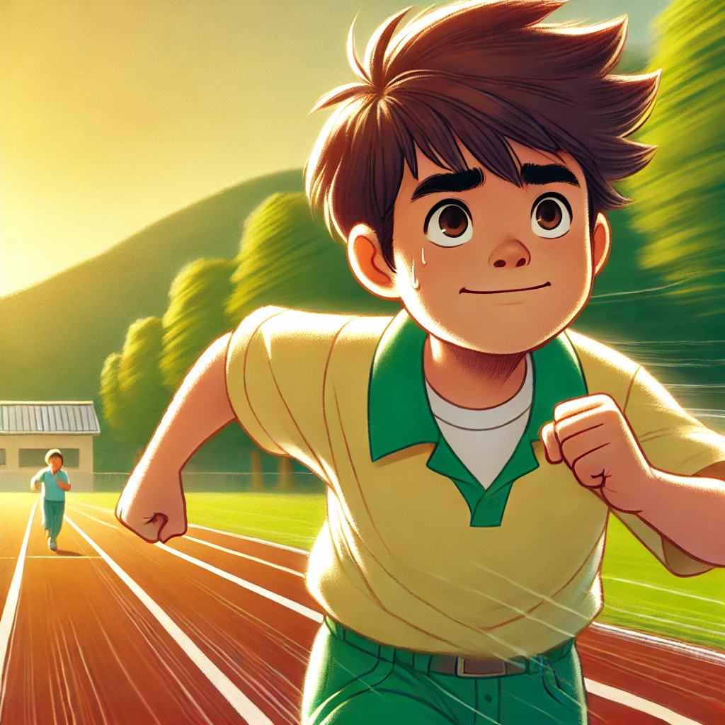 Jake was a little boy who loved to run. But he was not fast. Every time he raced, he came last. He felt sad, but his grandpa told him, "Nobody is perfect at the start. Keep trying!" Jake practiced every day. At first, he tripped. Then, he ran a little faster. One day, there was a school race. Jake ran with all his heart. He did not win, but he was not last! Jake smiled. He knew he had improved. "I will keep running!" he said. |