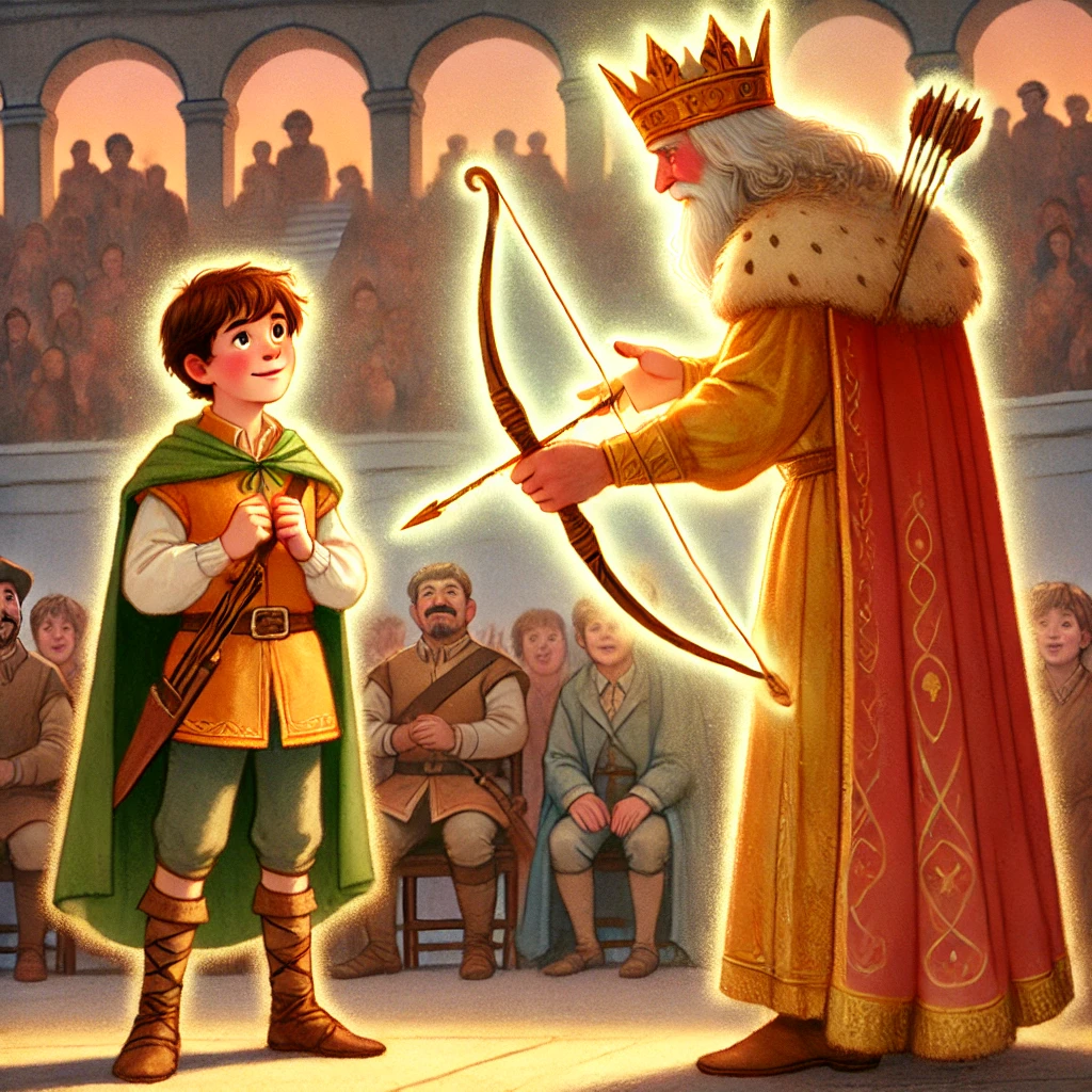 One day, the king announced a grand tournament to find the best archer in the land. The prize? A golden bow and a place in the royal guard. Liam's heart burned with excitement, but he had only an old wooden bow, unlike the other archers with their fine weapons.