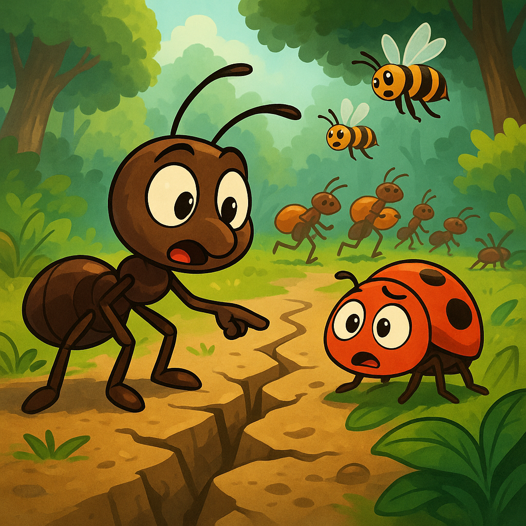 작은 푸른 숲에 지코라는 영리한 개미가 살고 있었어요. 지코는 다른 개미들과 달랐어요. 땅을 유심히 살펴보는 걸 좋아했죠. 어느 맑은 아침, 지코는 땅이 살짝 움직이는 걸 느꼈어요. 아주 조금이었지만, 흙에 작은 금이 간 것도 보았죠. 그는 재빨리 무당벌레 친구 리라에게 달려갔어요. “방금 느꼈어?” 지코가 물었어요. 리라는 고개를 저었죠. 지코는 큰 개미굴로 갔어요. 어른 개미 카로에게 말했죠. “뭔가 안 좋은 일이 올 것 같아요.” 카로는 땅을 살폈어요. 그도 작은 흔들림을 느꼈죠. 더듬이가 살짝 움직였어요. “그래,” 카로가 말했어요. “이건 지진일지 몰라.” 자연에서는 몇몇 동물들이 큰 재난이 오기 전에 작은 변화를 먼저 느껴요. 개미들은 땅속의 작은 진동을 감지해 지진이 올 걸 알아채죠. 카로는 작은 휘파람을 불었어요. 개미 무리를 위한 비밀 신호였죠. 개미들은 빠르게 움직였어요. 먹이와 알을 안전한 곳으로 옮겼죠. 리라도 도왔고 벌들도 날아갔어요. 얼마 후 땅이 크게 흔들렸어요. 낡은 개미굴은 무너졌지만, 개미들은 모두 무사했죠. 나중에 동물들이 지코에게 고마워했어요. “네가 우릴 살렸어.” 카로가 말했어요. 그날 이후 숲속 동물들은 모두 지코처럼 땅의 소리를 들었답니다. |