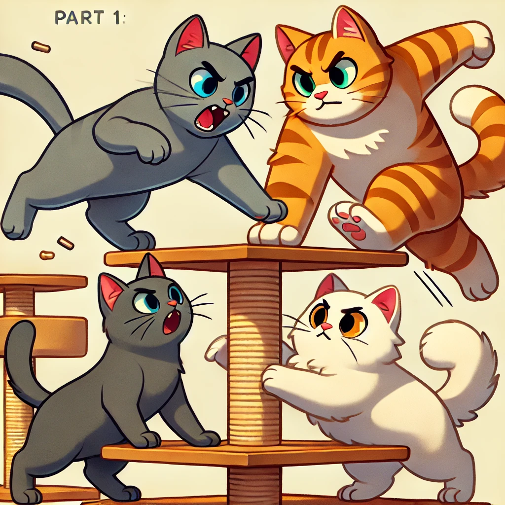 They meowed, pawed, and tumbled—each wanting to be the ruler of the highest spot.