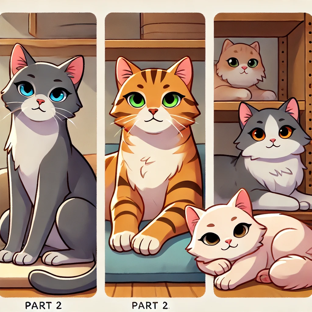 On a bright morning, the sun poured into the cozy living room where three cats—Luna, Max, and Coco—lived.