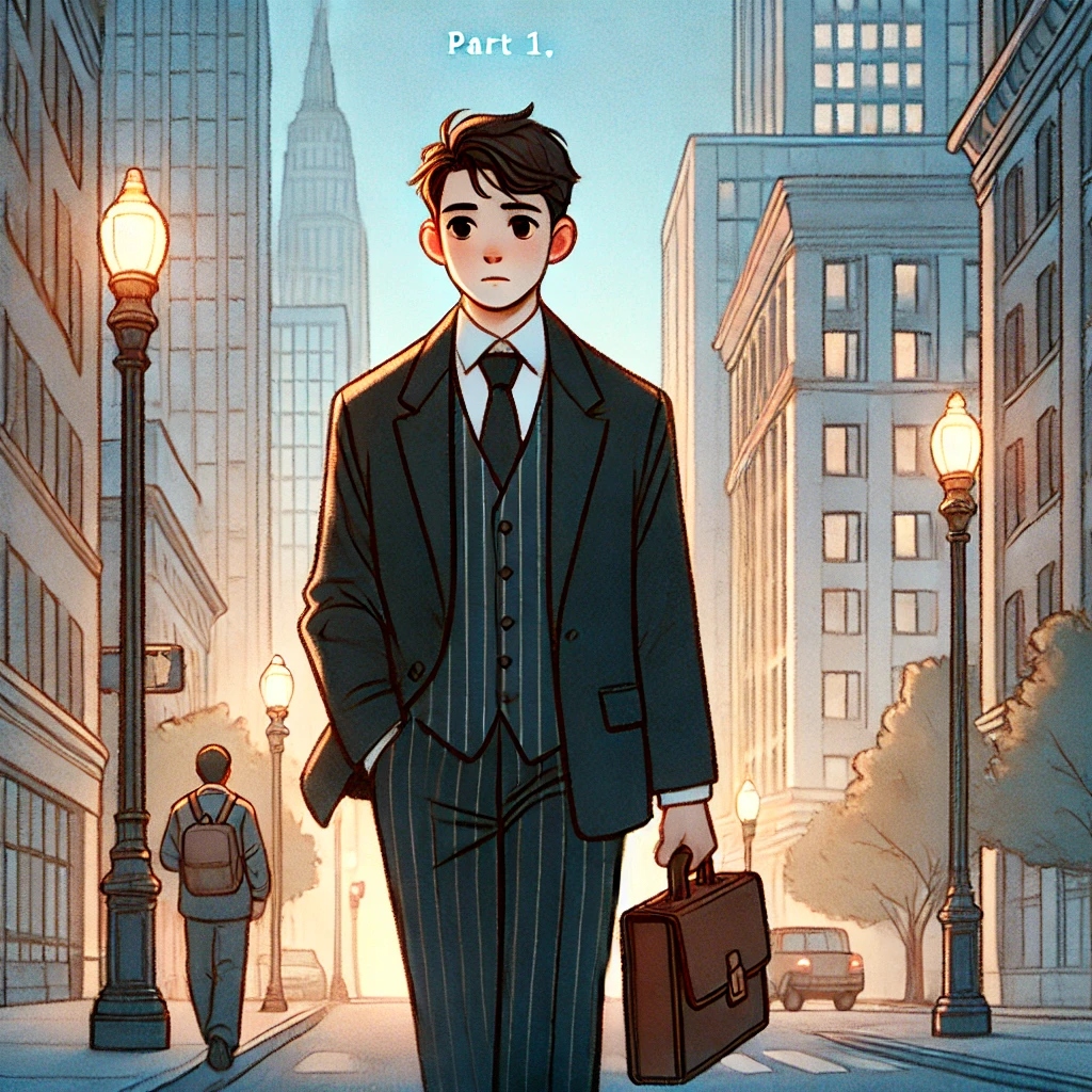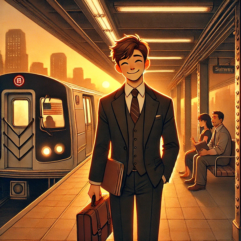 Part1. "긴 하루의 시작" 톰은 이른 아침에 일어났어요. 검정 정장을 입고 무거운 서류가방을 들었지요. “또 바쁜 하루네.” 그는 한숨 쉬었어요. 출근길 지하철에서 좋아하는 책을 읽었어요. 하지만 눈이 점점 무거워졌어요. “잠이 부족했나봐.” 톰은 생각했어요. 아침 지하철은 시끄러웠지만, 그는 책에 집중하며 미소 지었어요. |