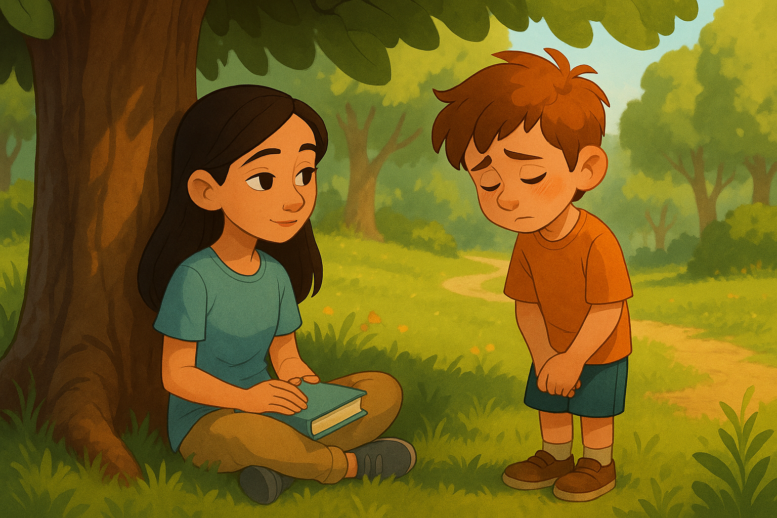 Every day, she sat under the same tree and read a book.