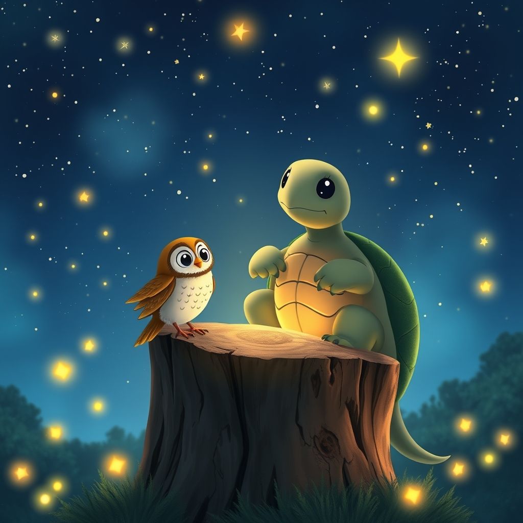 In the deep, quiet forest, a little owl named Orwin was always full of questions. "Why does the moon change shape?" "How do fireflies glow?" He asked every creature he met, but not all had the answers. One night, he met an old turtle named Tavish, who smiled kindly. "Seeking knowledge is wonderful, Orwin," he said. "But when you learn something new, share it with others." Orwin took this advice to heart. As he learned about the stars from the wise fox and the winds from the soaring eagle, he passed on his knowledge to the younger animals. Soon, Orwin became known as the little owl who not only asked but also shared, making the whole forest wiser. |