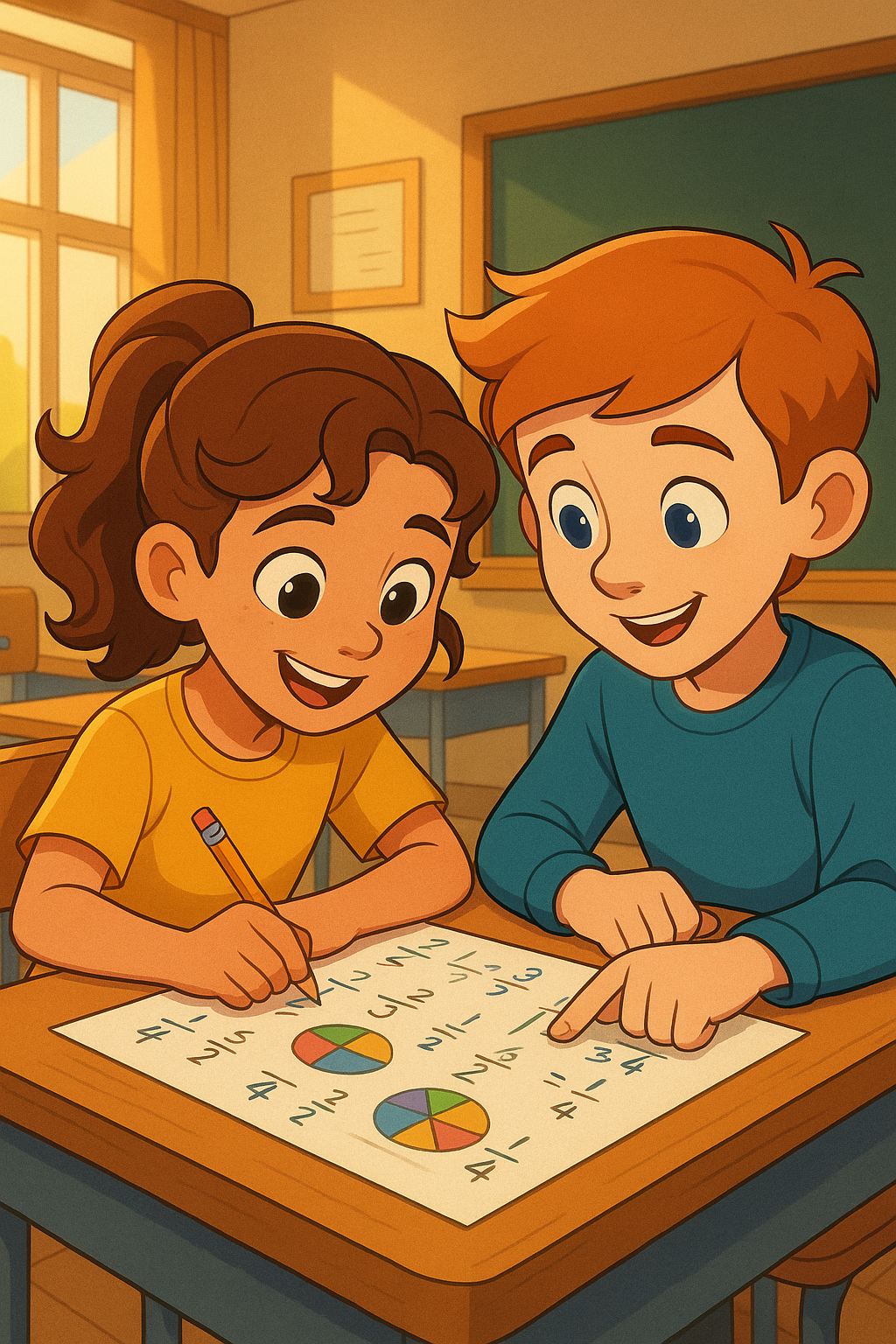 어느 날, 수업에서 분수를 배우기 시작했어요.